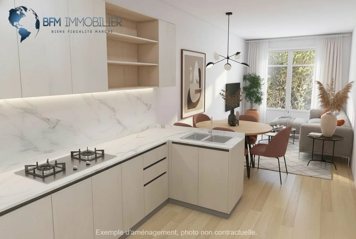D’une superficie habitable actuelle de 45,61 m² en T2, le bien est traversant et profite d’une bonne exposition, offrant une luminosité naturelle agréable.